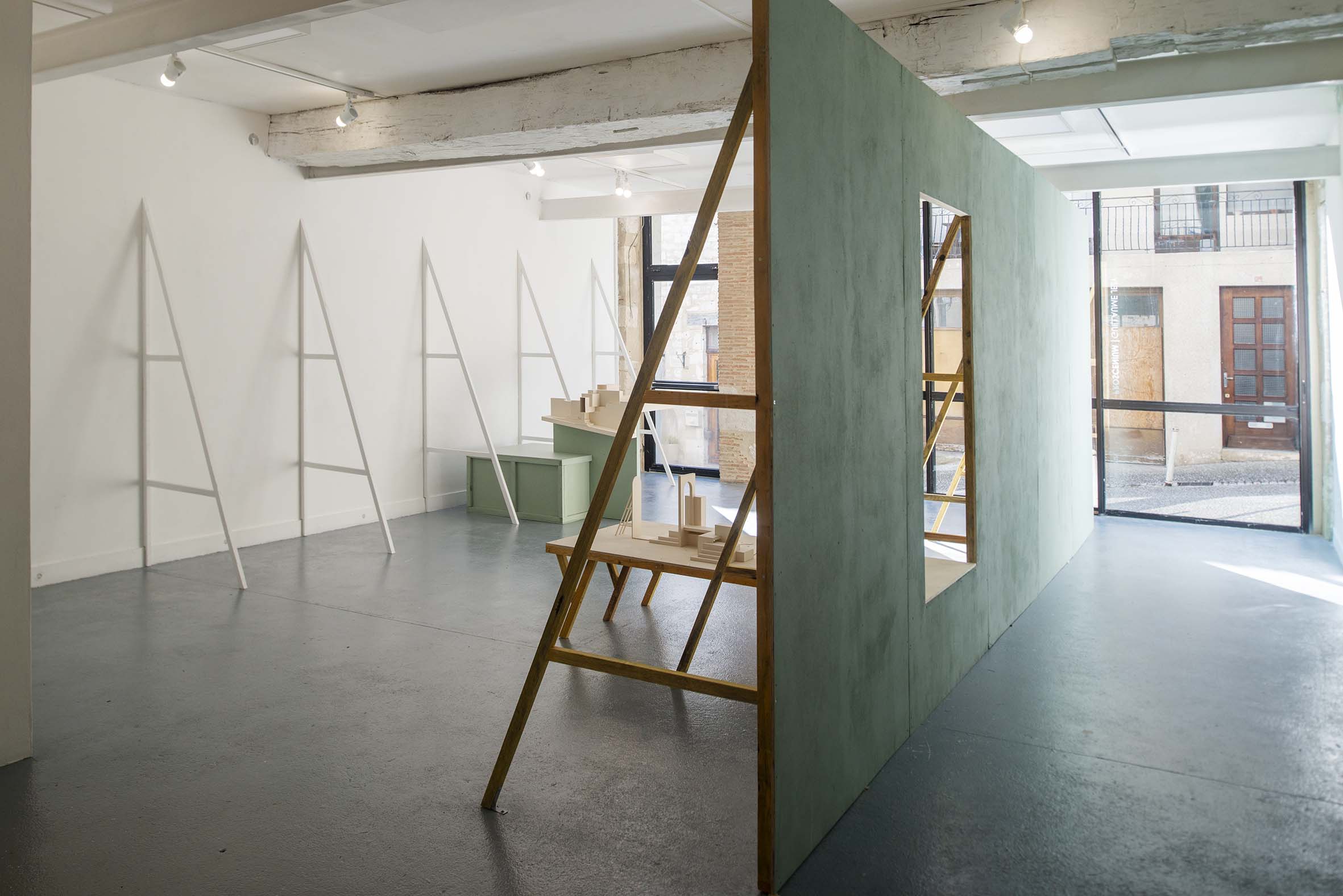Il conçoit des mondes alternatifs où les fonctions des structures sont altérées : des formes génériques, neutres et brutes perdent leur utilité, deviennent des volumes en attente d’activation. En mixant époques, échelles, formes et fonctions, il interroge les dimensions et rôles de l’architecture, tout en déstabilisant l’existant. Monflanquin avec ses places, ses carrérots, devient ainsi un terrain d’exploration où s’activent des topographies alternatives et des micro-récits. Ses créations s’infiltrent comme des systèmes parasites où semblent se jouer des questions d’organicité et de coexistence. Durant sa résidence, Guillaume observe la bastide médiévale qui se déploie sous ses yeux, tel un spectateur observant le décor d’un théâtre. Les portes, les vitrines, sont pour l’artiste des narrations potentielles où l’espace privé inconnu pourrait rencontrer l’extérieur que l’on pense connaître. Guillaume nous révèle ce qui nous entoure et nous emmène dans une architecture mi-réalité, mi-fiction. Ces observations l’amènent à Monflanquin, à créer une installation jouant de l’intérieur et de l’extérieur, du décor et de la réalité, de la maquette à l’échelle monflanquinoise. »